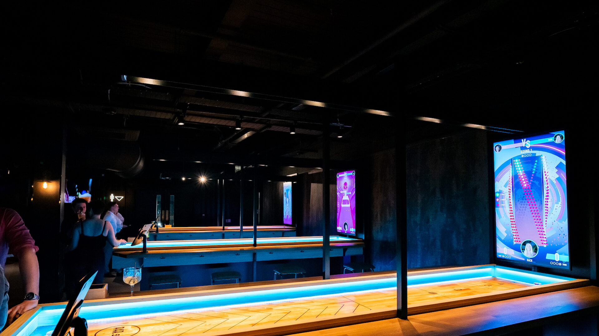 As you play, your pucks and tracked and displayed on a digital screen, giving a tech twist to your shuffleboard experience.