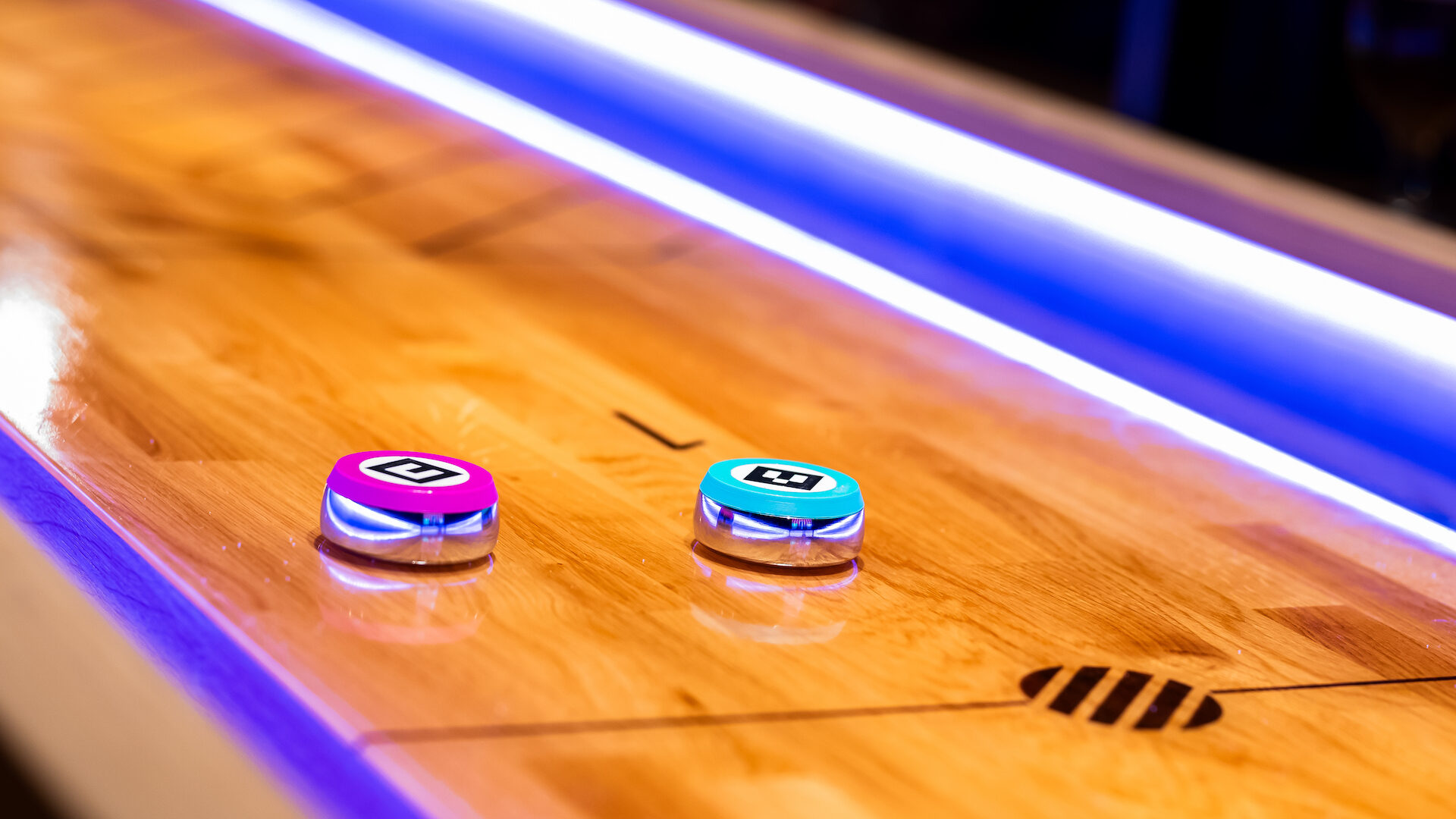 A high-tech interactive version of the classic table shuffleboard. Boasting a range of engaging game modes, Turbo Shuffle merges the skill of classic shuffleboard with the thrill of a video game.